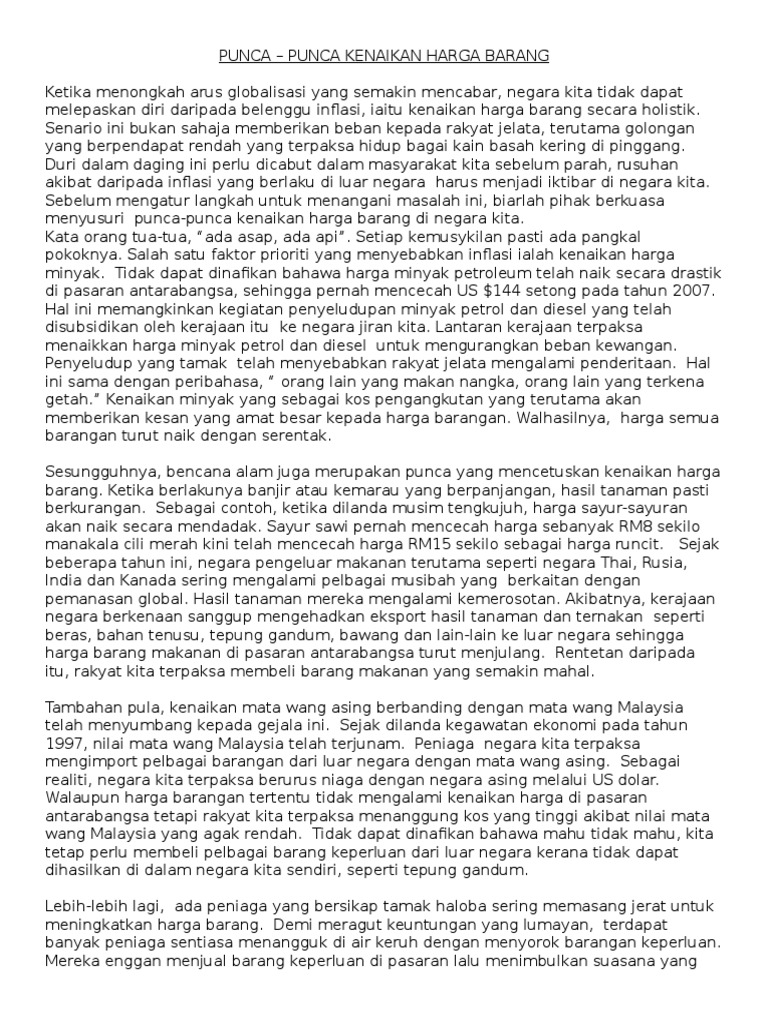 Punca Punca Kenaikan Harga Barang Pdf